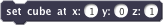 - On ScratchX, drag “set cube at x:1 y: 0 z: 1” block to Scripts Area, then click the block. You will see a gray block is set near to the origin point.