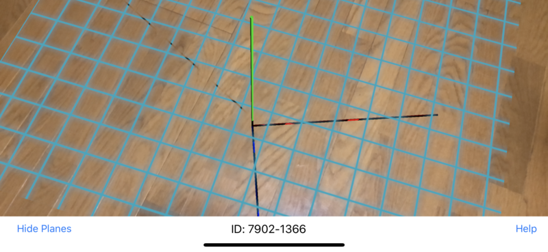 - Back to S2AR on iOS device, find any surface then tap on it. Coordinate axes should appear there. This will be origin point(x:0, y:0, z:0).